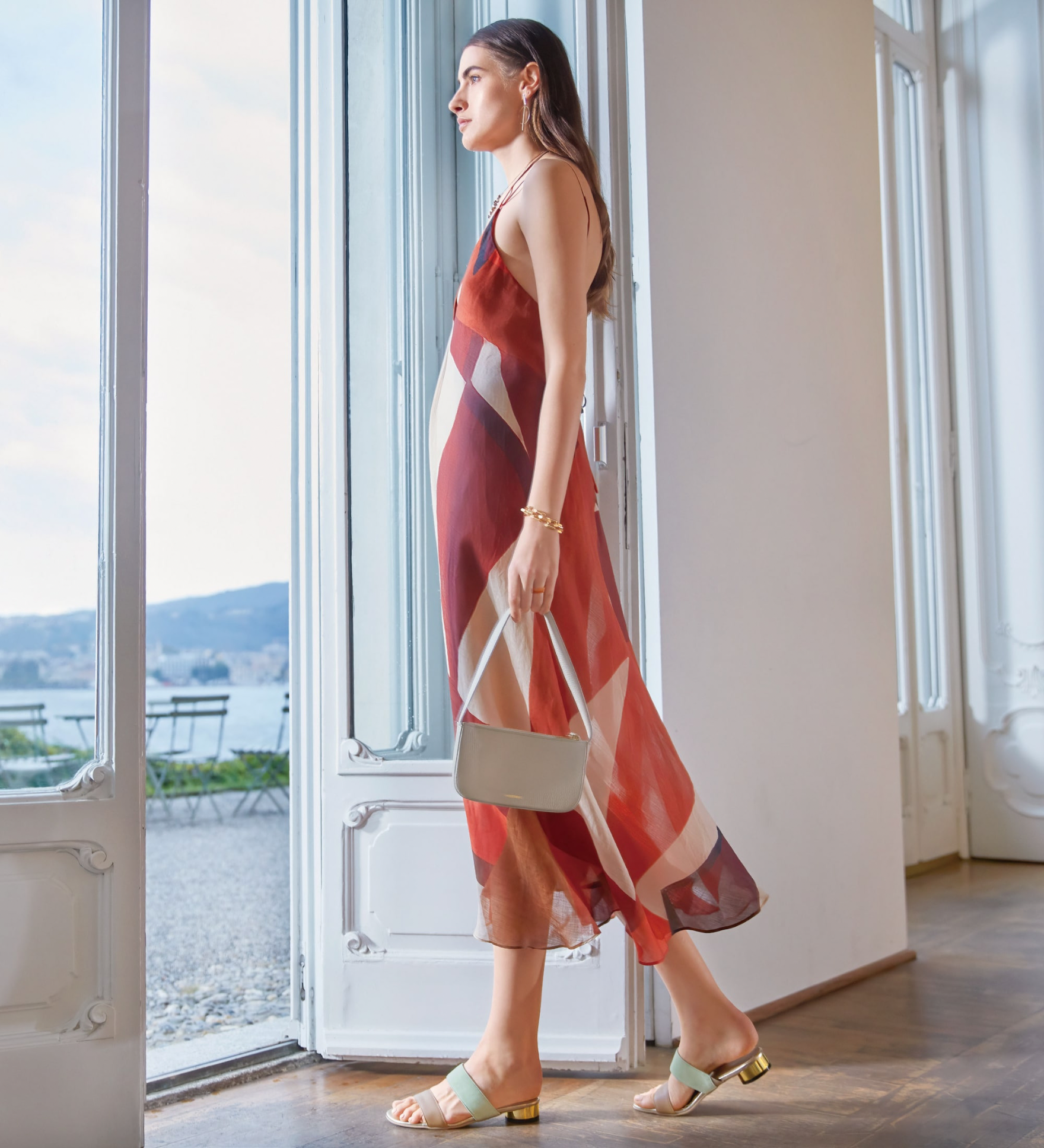 Criamos uma sandália que combina elegância e conforto. Tiras em duas cores diferentes e um salto baixo espelhado. A palmilha inclui acolchoamento interno para melhor ajuste e sensação ao caminhar.