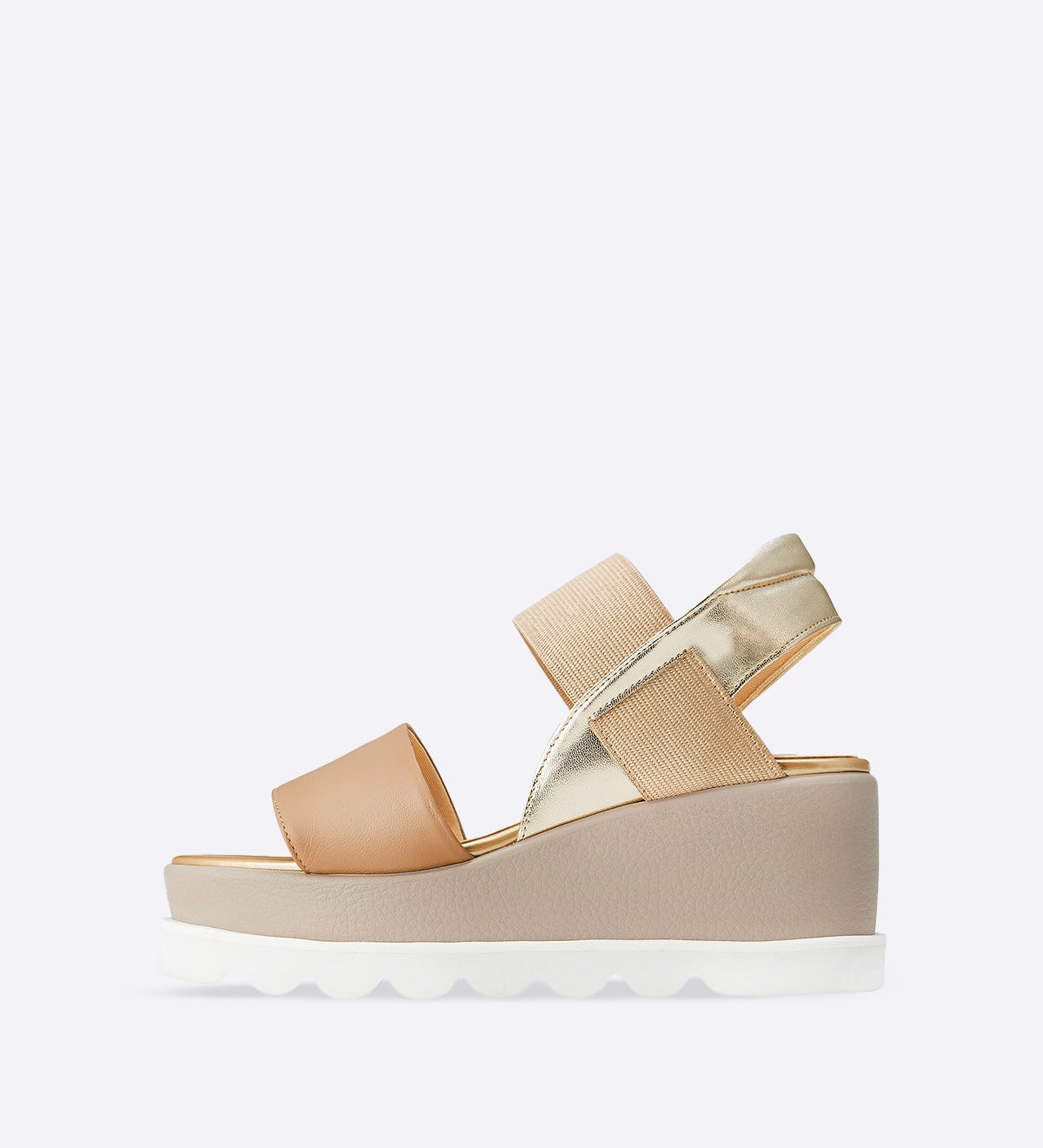 Sandália Camila em couro com tiras bege dourado