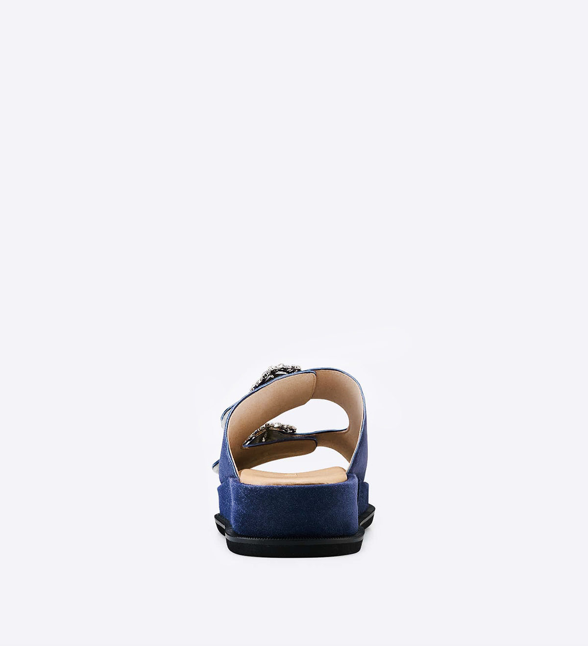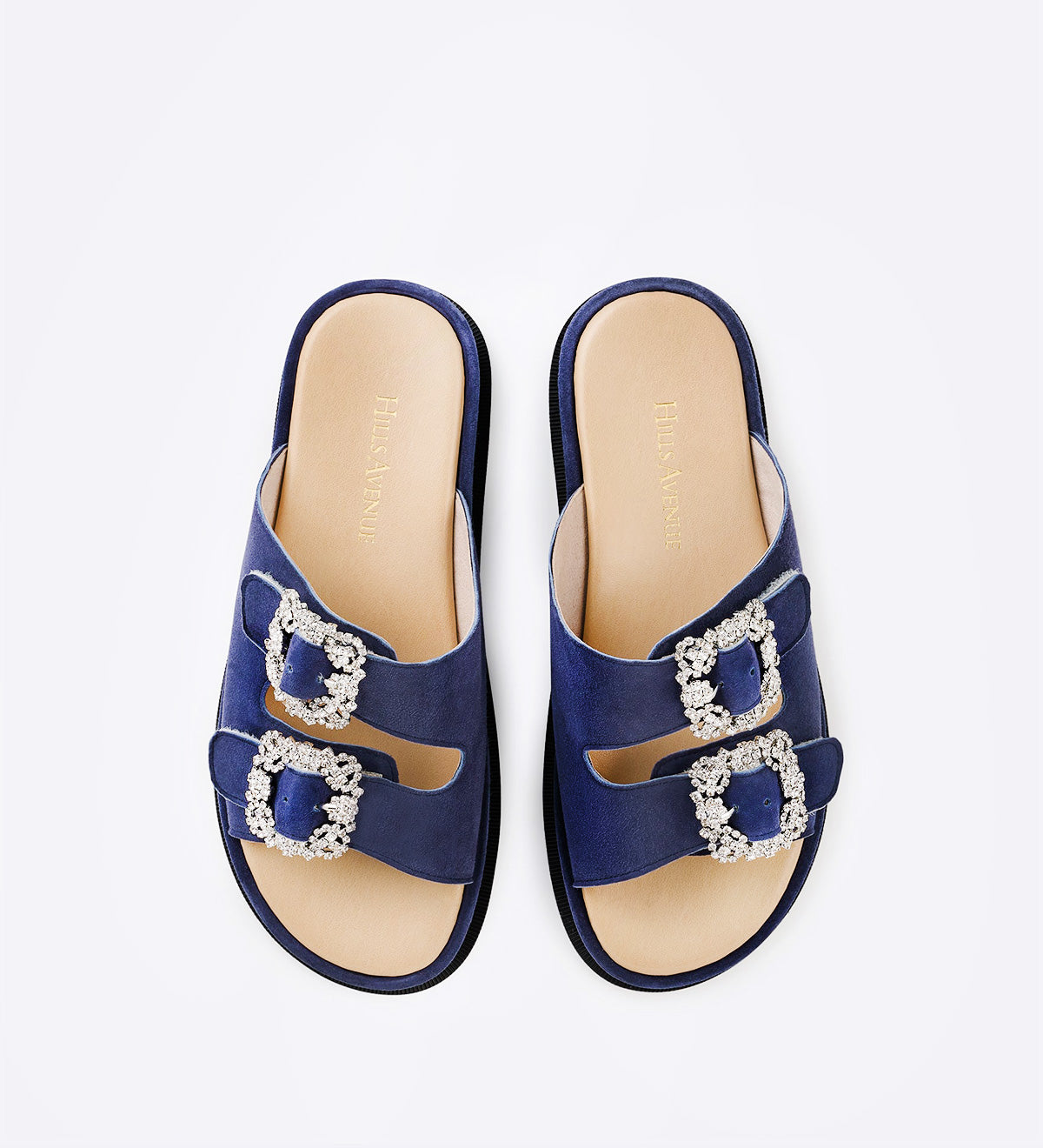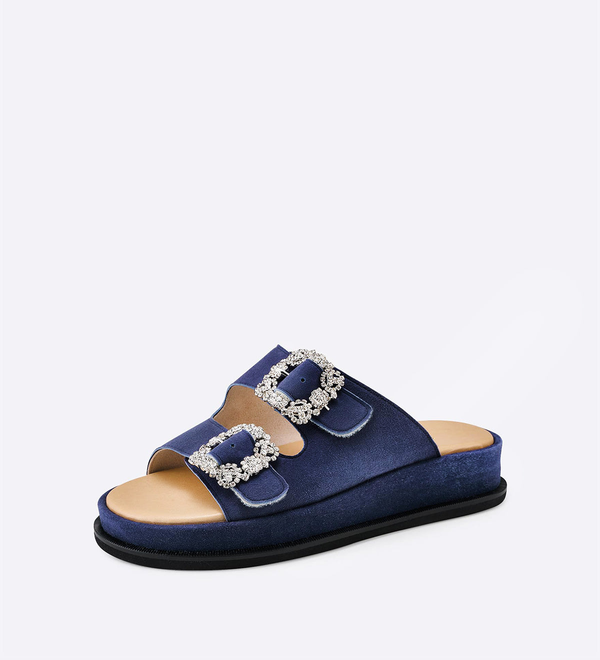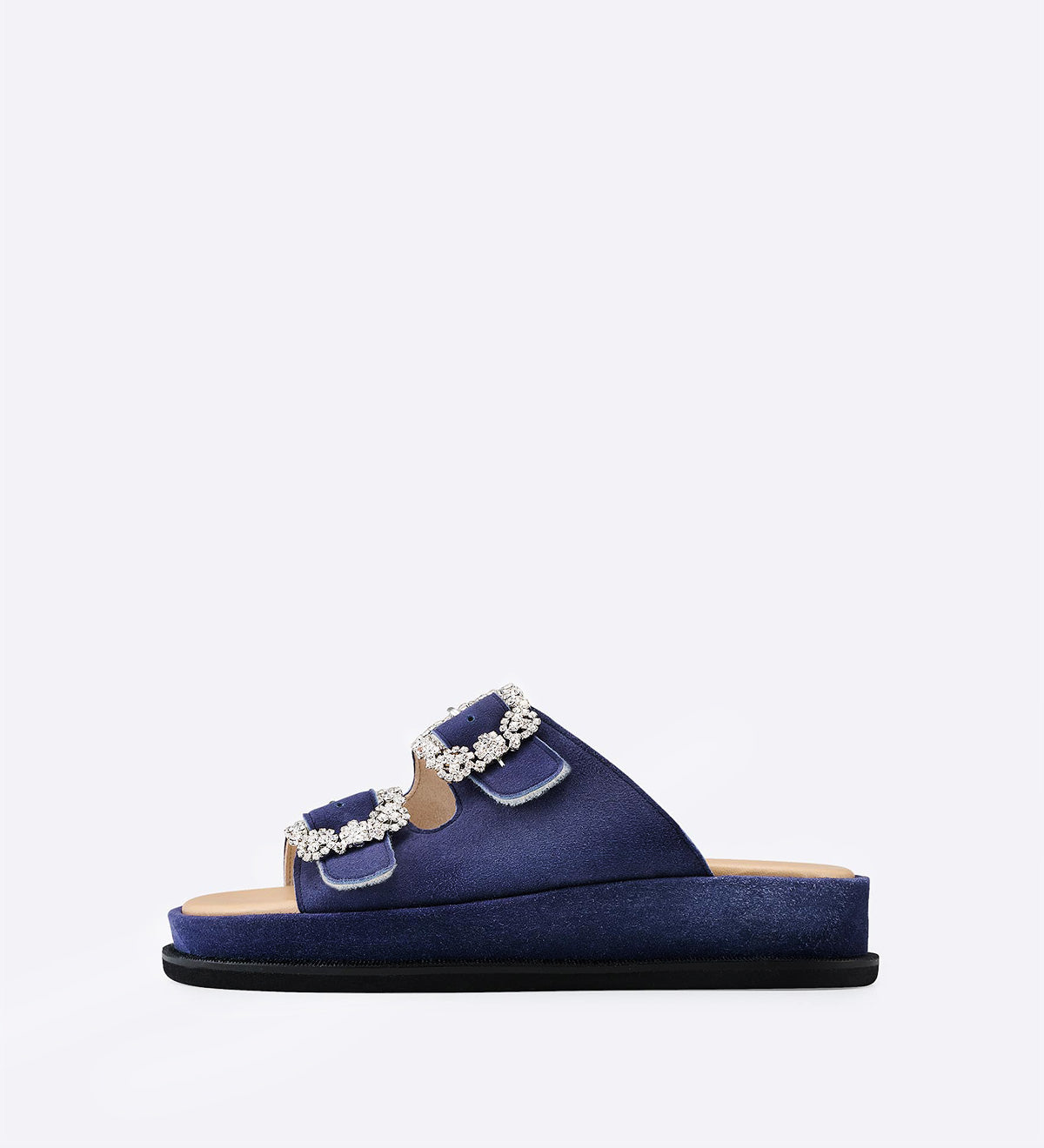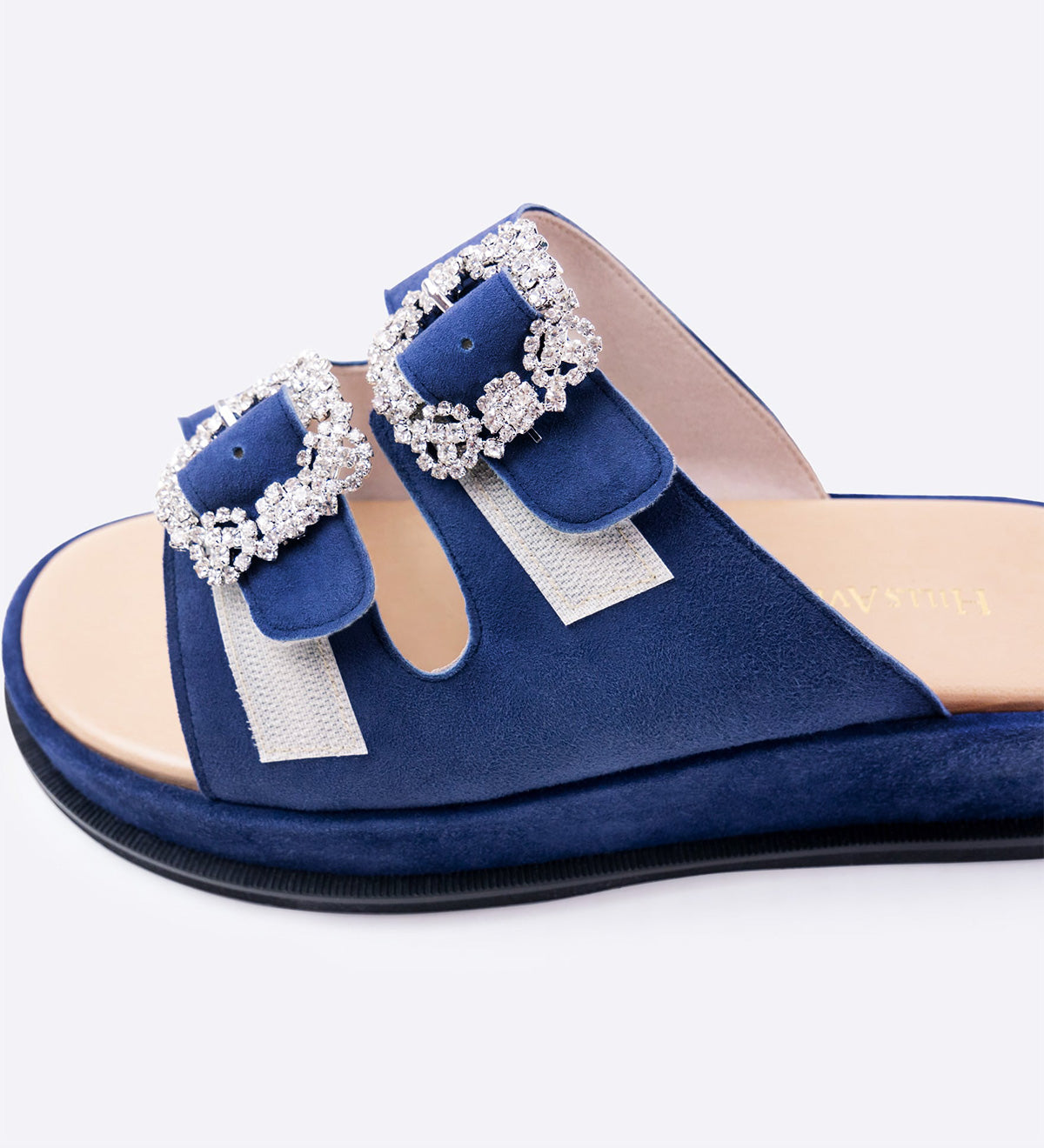 Para um estilo casual adicionamos uma fivela com detalhes em pedraria à camurça, criando um acabamento elegantíssimo. A tira dupla é ajustável para dar segurança em cada passo. Já a palmilha é preenchida com uma espuma de 5mm, proporcionando conforto aos pés.