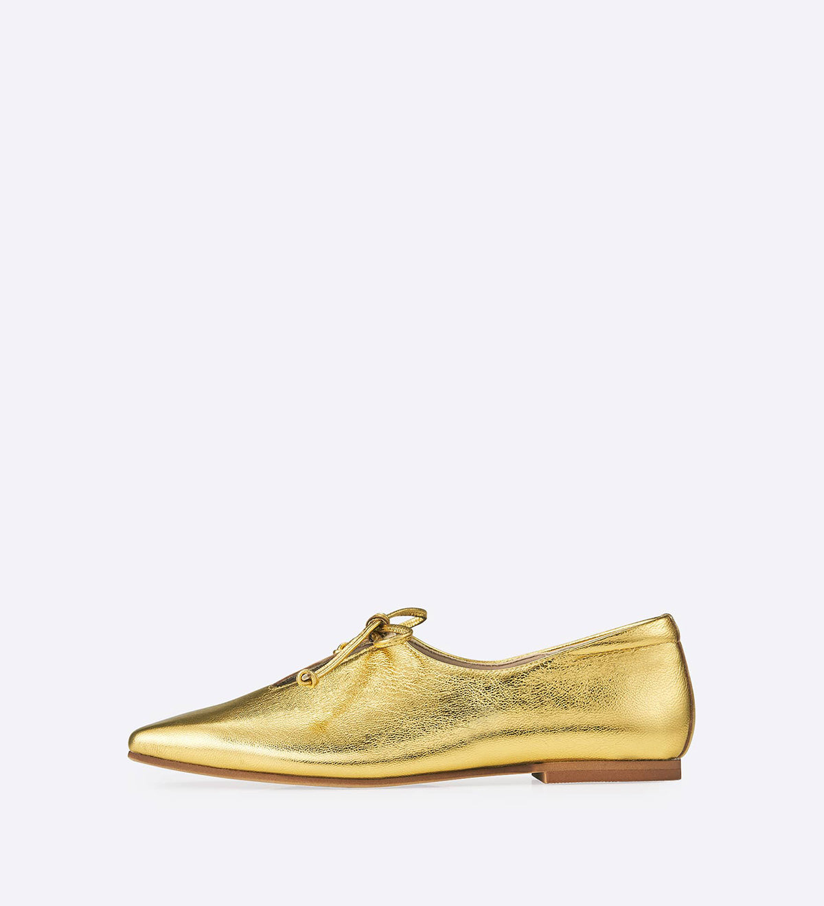 Sapatilha com estilo moderno e cheio de personalidade. Feito com couro macio, o flat tem uma silhueta profunda no peito do pé e um bico quadrado marcante. Incorporamos fendas e laços do mesmo material na parte superior, com um estilo descontraído e toque de moda
